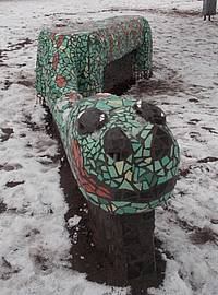 Ein Dino auf dem Hof