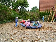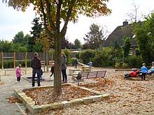 Hier sind die Frielinger Kinder gern beim Buddeln und Matschen. Auch die Klettergerüste und der Bagger werden gern bespielt.