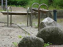 Hier sieht es ziemlich trotzlos aus. Zum Spielen läd dieser Spielplatz leider nicht ein.